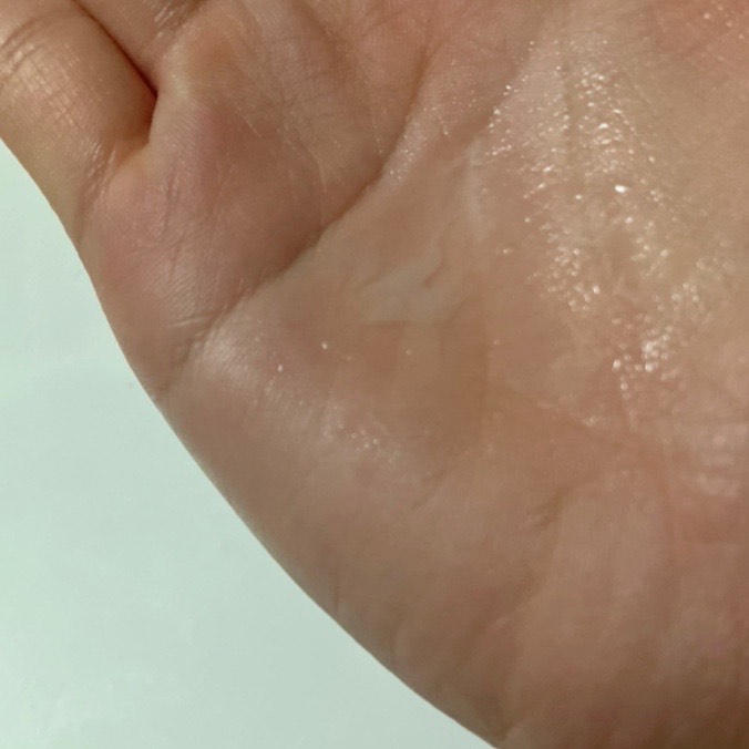 キャップを開けるとワンプッシュで手軽に使えるスプレーになっていて、 霧吹き状の美容液が髪を優しく潤します。サラッとしている水のような使用感です。