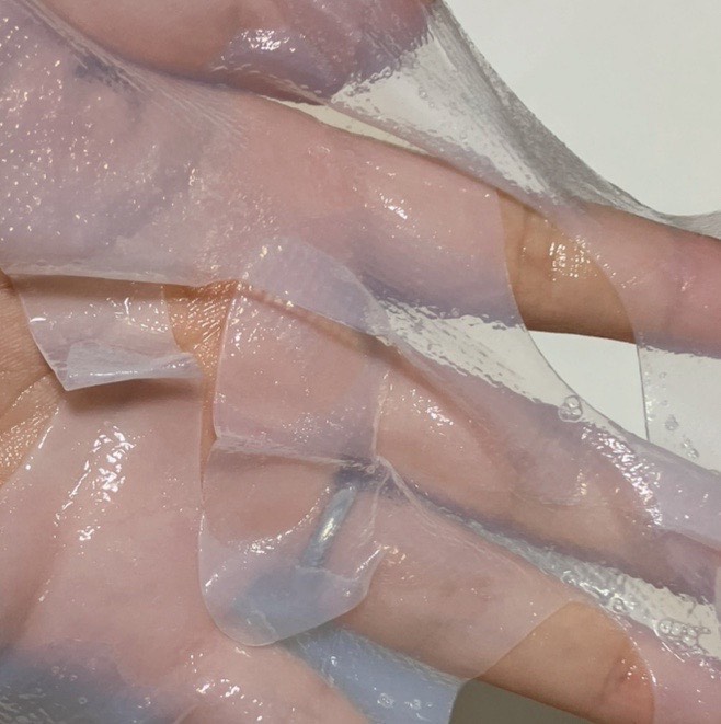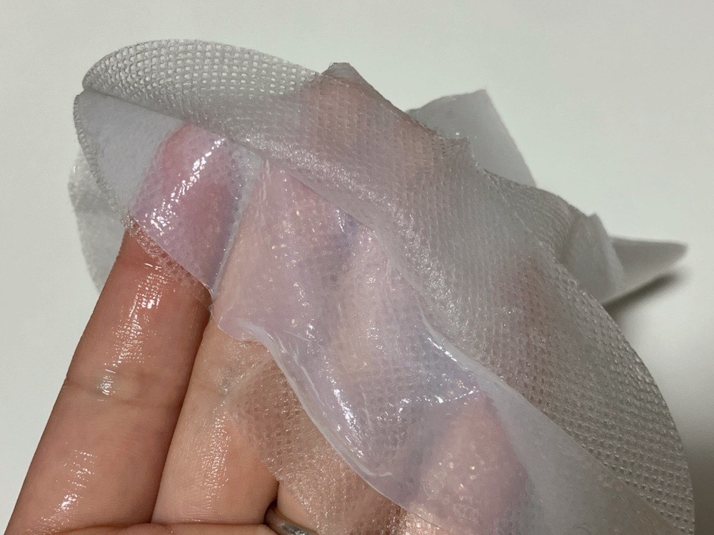 2枚の保護シートの中に、ちゅるんとしたシートマスクが入っています。