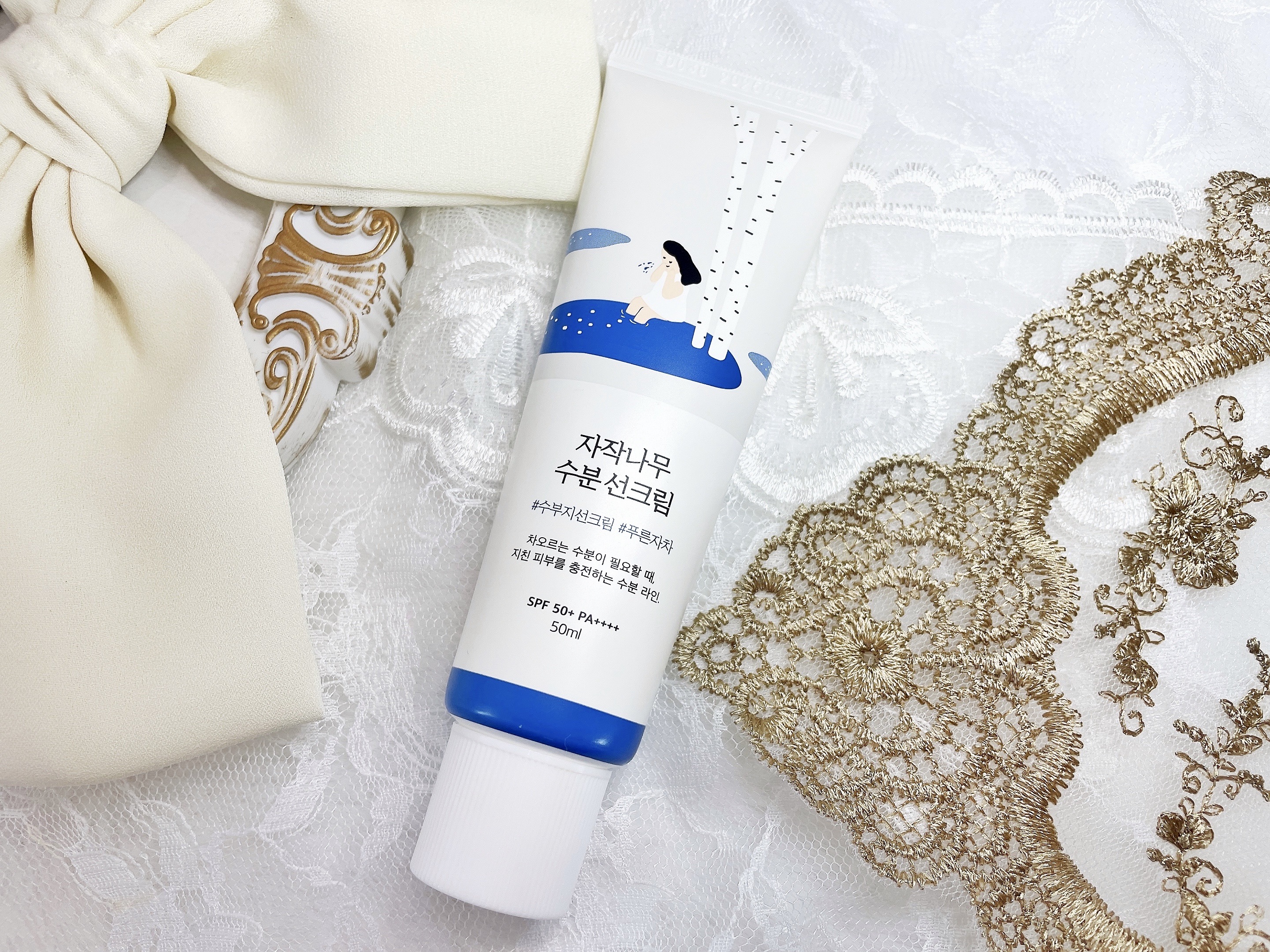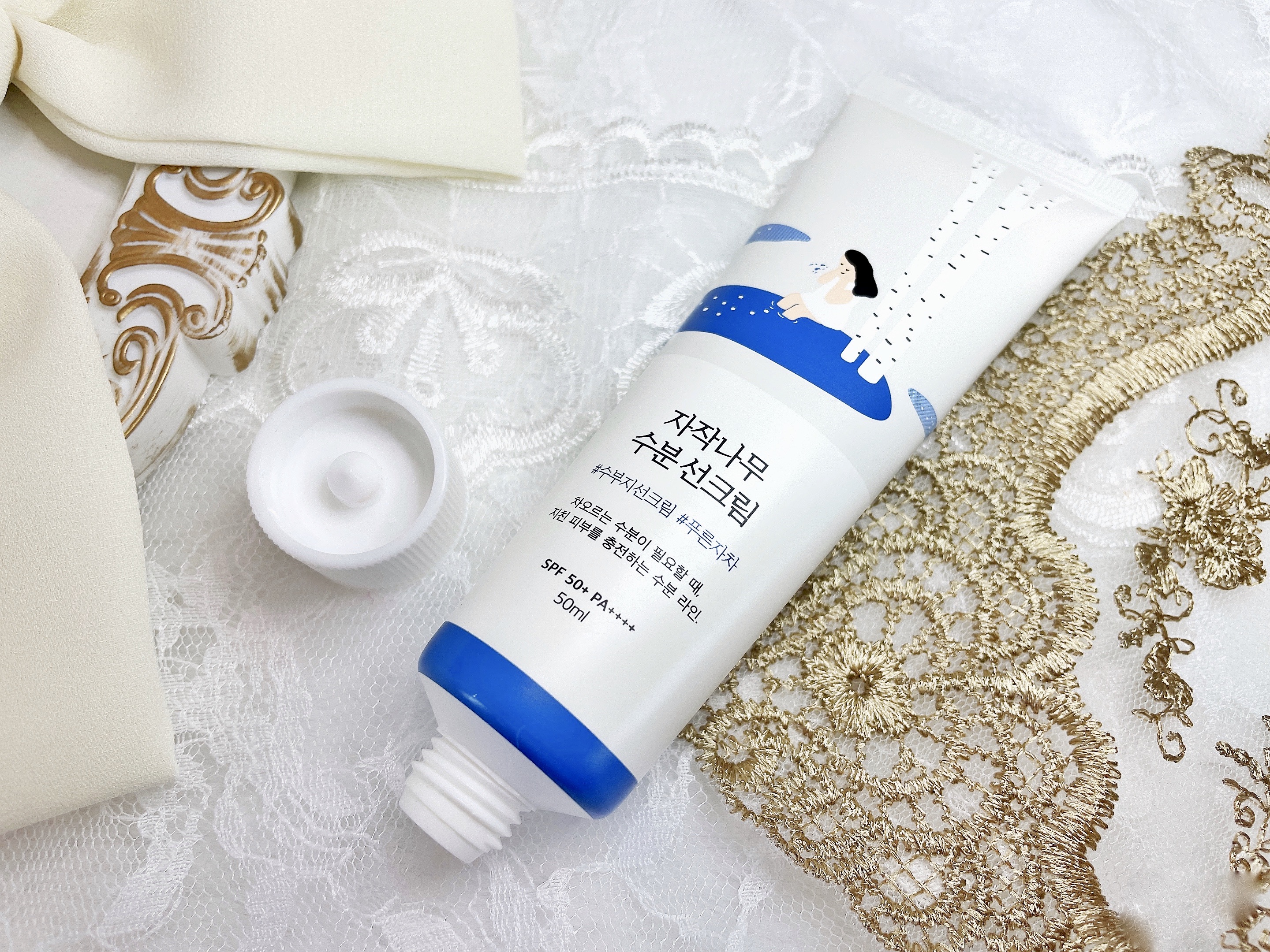 韓国らしいキュートなデザインに惹かれる「ラウンドラボ」の白樺水分UVクリーム。