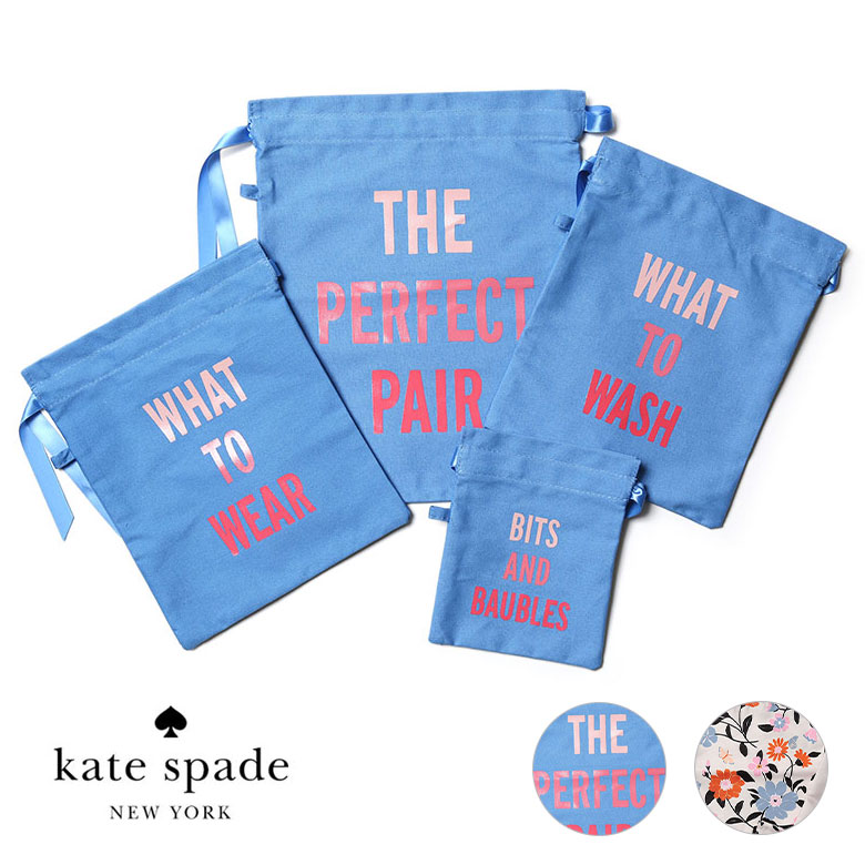 ケイトスペード トラベルポーチ(大小4枚セット) 大小4枚の巾着が入ったおしゃれなセットです。統一感があるので、バッグの中がすっきりまとまります。旅行にも便利ですね。
