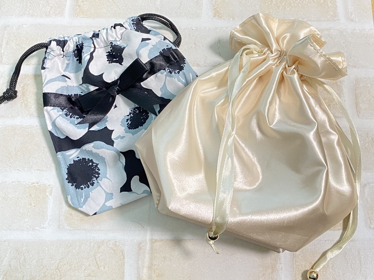 巾着というと小学生が使用する給食のテーブルクロス入れや体操着入れを連想する方もいるかもしれませんが、大人向けのおしゃれな巾着もたくさん販売されているので、ぜひチェックしてみてくださいね。