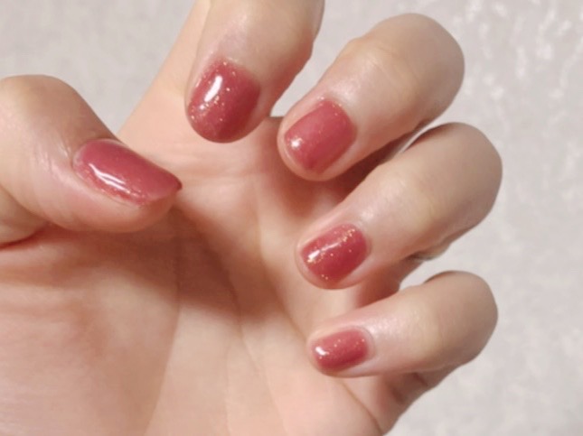 ほんのりとしたラメが入っていて、塗ると気分が上がります。ワンカラーは比較的初心者の人でもお試しやすいデザインです。