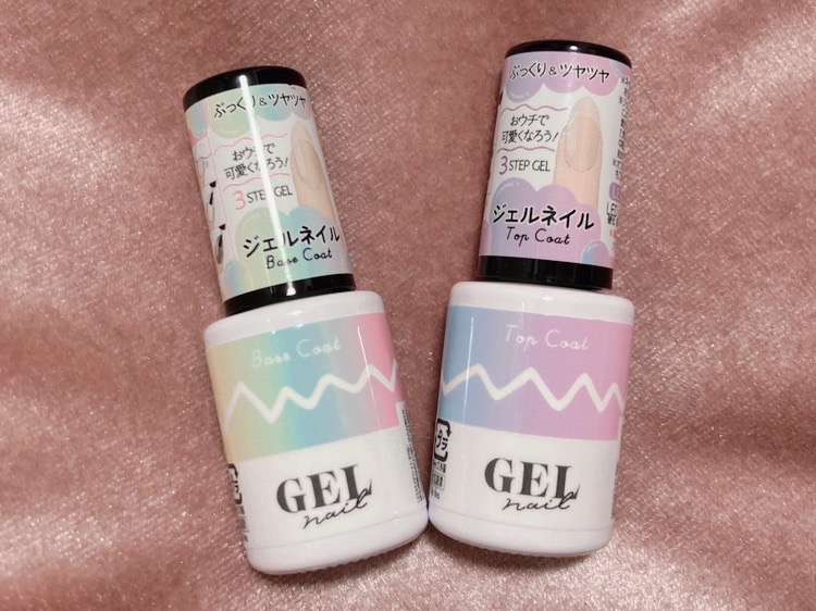 どちらもダイソーで購入。まずはお試しで百均で購入してみることにしました。実際に使って見たところ、すぐに剥がれることもなくネイルは長くて2週間以上持ちました。