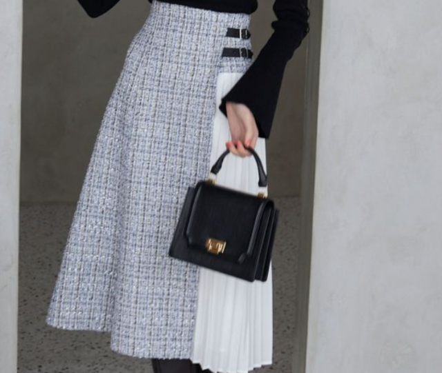 異素材やドッキングのツイードスカートなら、コーデにアレコレと悩まずともシンプルなトップス・ニットでトレンドを活かした印象に仕上がるでしょう。