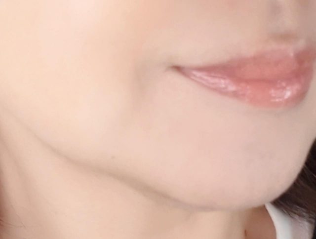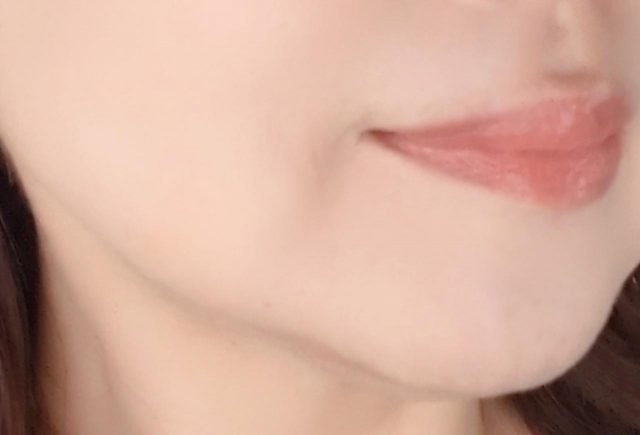 ですがこちらのリップの質感がシアータイプなので、くっきりはっきりと発色するのではなく、透明感のある口元に仕上げてくれるんです。