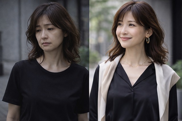 大人世代の“若見え黒コーデ”の正解とは?老け見えしない黒の使い方2025/12/24UP! by miho タグ: 40代ファッション, 上品スタイル, 大人コーデ, 着こなし術, 老け見え対策, 若見え, 黒コーデ 「黒は着やせして見える」「失敗しにくいから安心」そんな理由から、クローゼットに黒アイテムが増えていく女性は少なくありません。けれど一方で、「なんだか顔色が暗く見える」「全身黒だと疲れて見える気がする」と感じたことはありませんか?