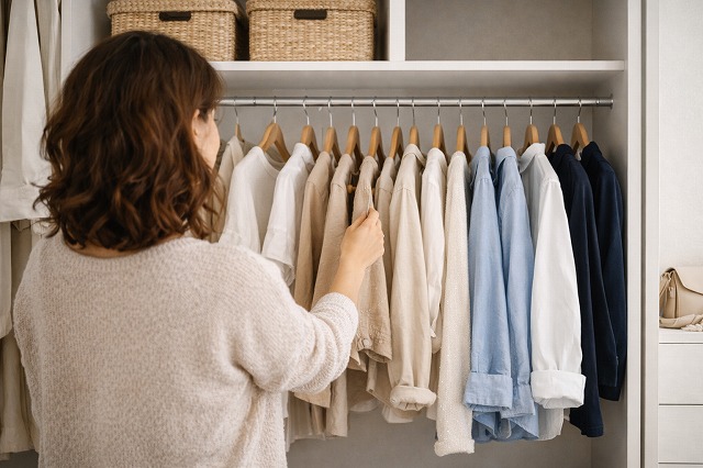 色と雰囲気が整ったワードローブは、朝の支度を楽にするだけでなく、見た目の印象も自然と洗練されていきます。
