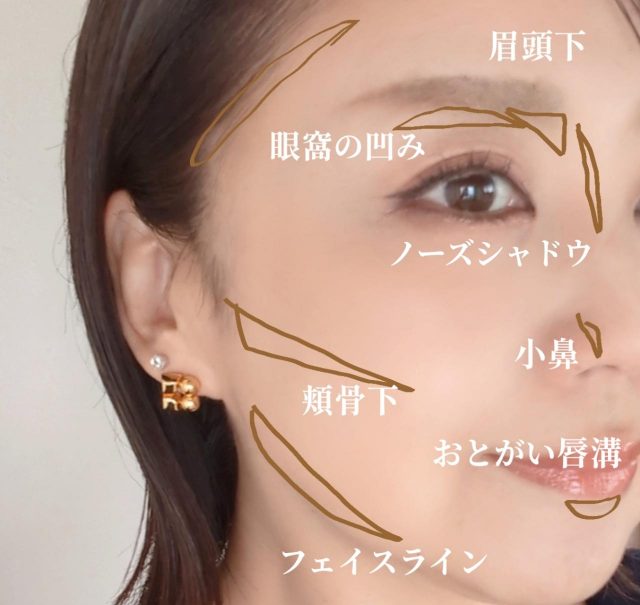 これらは本来、シェーディングを入れる箇所として挙げられます。ですが大人世代は、これらの位置にシェーディングはご法度!気になる悩みを悪目立ちさせてしまうことになります。