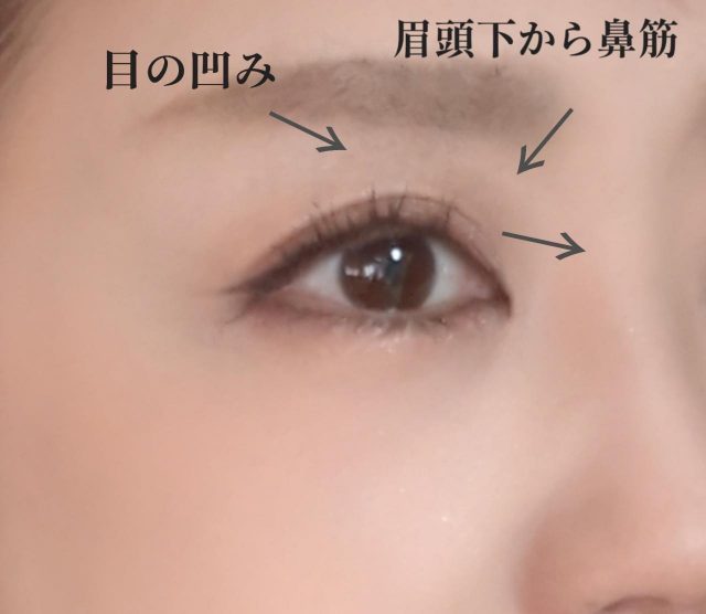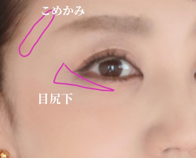 くすみを飛ばすようにハイライトをのせることで、目尻しいては顔全体のリフトアップ効果にも繋がりますよ。