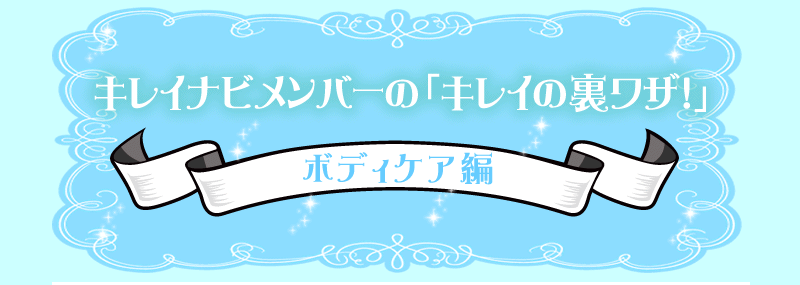 ボディケアのお手入れはお風呂が一番。裏技とは言えないが、お風呂上がりの体をもう一度あかすりの要領で手で擦ってみて。以外に足の指の付け根やかかとあたり、太ももやひざの後ろ等、湯船に浸かったり湯気のスチーム効果でさらに垢がでますよ〜。