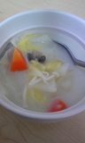 白菜のミルク煮、ご飯少し、フランスパン少し、焼き海苔、グレープフルーツジュース
