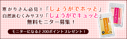 「しょうがでホッと」&「しょうがでキュッと」無料モニター募集!