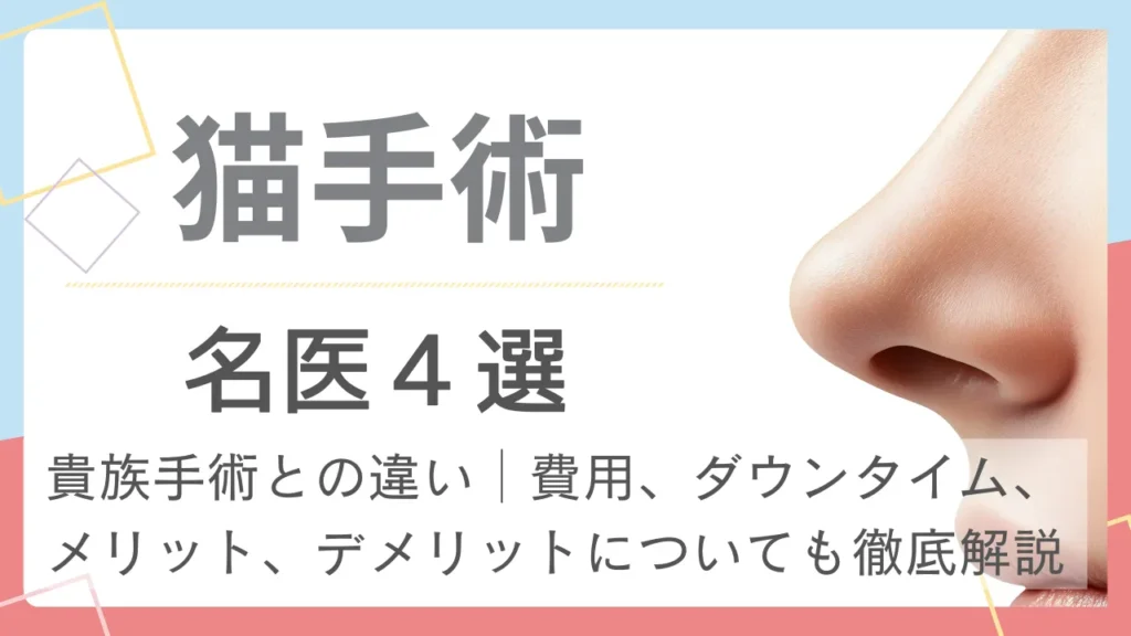 猫手術の名医の選び方、おすすめの医師一覧、施術のメリット・デメリット、ダウンタイム、費用相場、猫手術と貴族手術の違い、失敗例と後悔パターンまで徹底解説します。 -