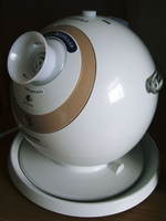 枕元に置いてスイッチを入れると、20分間見えないくらい細かいスチームが出て、続いて一晩中(約8時間)ナノイーイオンの微風が出ます。