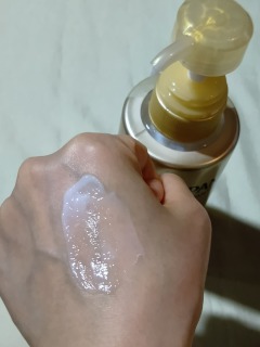 パッケージは、シンプルなホワイトベース。 ラベルに描かれた、文字デザインが映えるデザインで好み。 可愛いサイズ感のボトルなので、ドレッサーにも置きやすい。 中身はさらっとしたテクスチャー。 手に適量取り、なじます。 すっとなじみ、しっとりとするような使い心地。 ベタつかないので、たっぷり取りハンドプレスしてなじますのがお気に入りです。 乾燥とベタつきが気になる私に合うテクスチャーで良かったです。