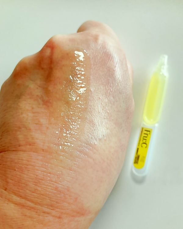取り出してみるとイエローカラーのトロミのあるテクスチャーの濃厚美容液ですね。