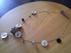 今日は最近作ったネックレスとピアスでお出かけしてます。シェルのボタンが家にあったのでビーズと組み合わせました♪個性的なアクセに変身♡