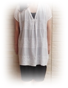 白のブラウスが、ハンガーに掛けて出しっ放しです。前面にレースがはめ込んであります。
