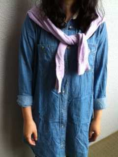アズ ノー アズ の薄いデニム地シャツワンピが丁度な陽気です。
