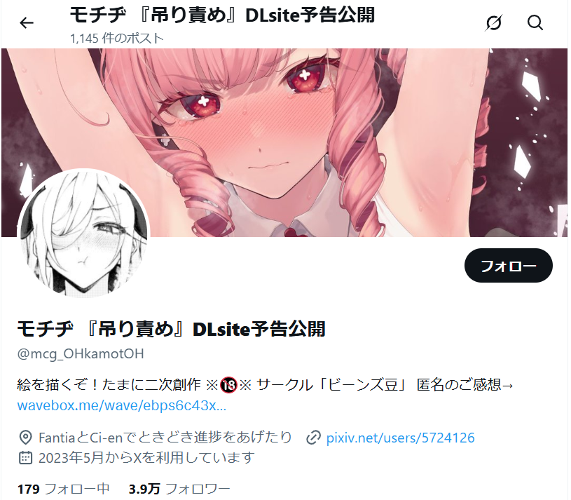Xのフォロワー数は3.9万人です!成人向け漫画家・イラストレーターとして活躍されています。