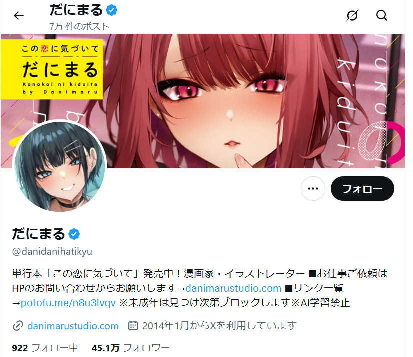現在は主に成人向け漫画を執筆されており、「DLsite」でも多数作品を販売中で特に「まだまだ、してみたい。」はランキング1位を何度も取っています!