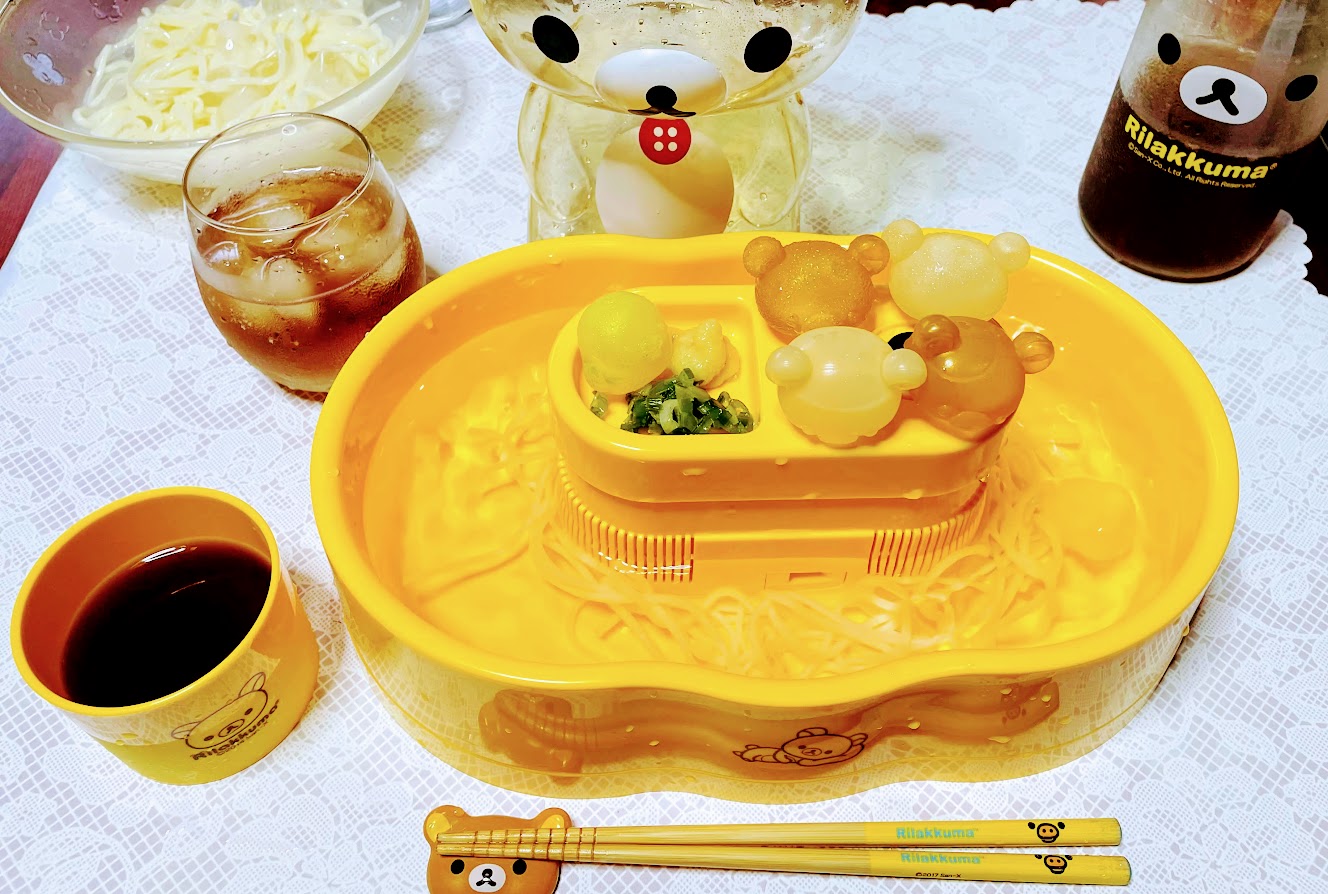 今日のお昼は毎年恒例のリラックマの一人流し冷麦✨