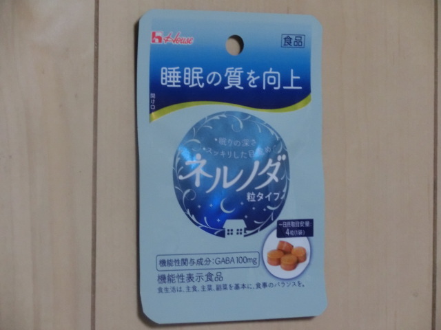 懸賞で、ネルノダという、睡眠の質を向上が期待できるサプリメントが当たり、コンビニで引き換えてきました。4粒入っていて、1日分らしいです。これで160円くらいです。特に早起きしないといけないときに使おうかと思います。