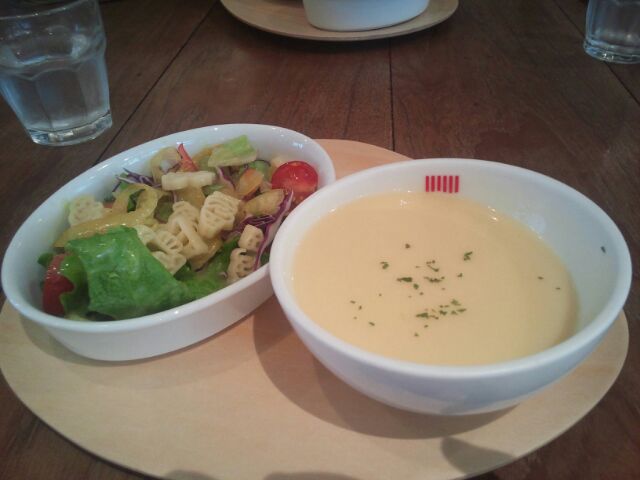 2016年03月20日に行った水道橋の「 ムーミンカフェ 」のサラダとスープ。