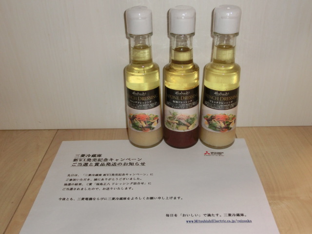 誕生日にプレゼントが!?と思ったら!某会員サイトのメルマガで懸賞に応募したら、ドレッシングが当たりました!今月は初旬からクジ運が悪く、こんなものかと諦めていました。ドレッシングを買わないで済みました(^o^)