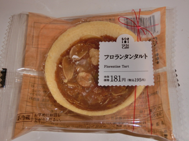 自分へのご褒美、フロランタンタルト。フロランタンもタルトも好きなので、両方のいいとこ取りでおいしかったです!ローソンのウチカフェスイーツですが、花畑牧場が作っているのですね。