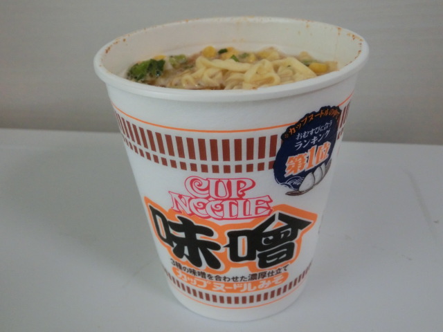 カップヌードル味噌、食べました。個人的には、醤油味より好きです\(^o^)/これが一時販売休止になるとは寂しいですが、もともとあまりカップラーメンを食べないので、しばらくしたら、またカップヌードル味噌が食べられるかも?と期待します。