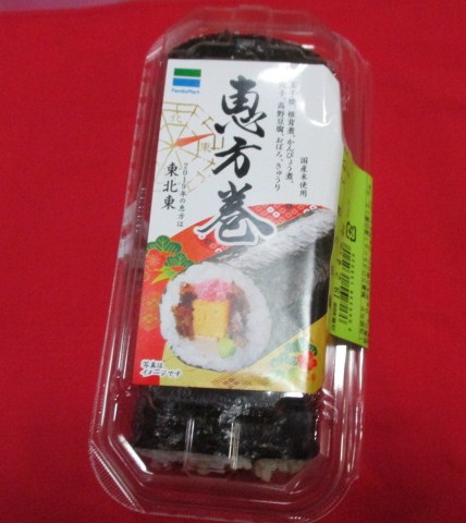 帰りが遅くなったこともあり、スーパーマーケットで恵方巻を買って食べました。(20%引き)