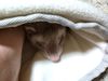 レッグウォーマーを洗濯したら縮んでしまったので、いたちの寝袋をちょっと借りて足を温めていたら、