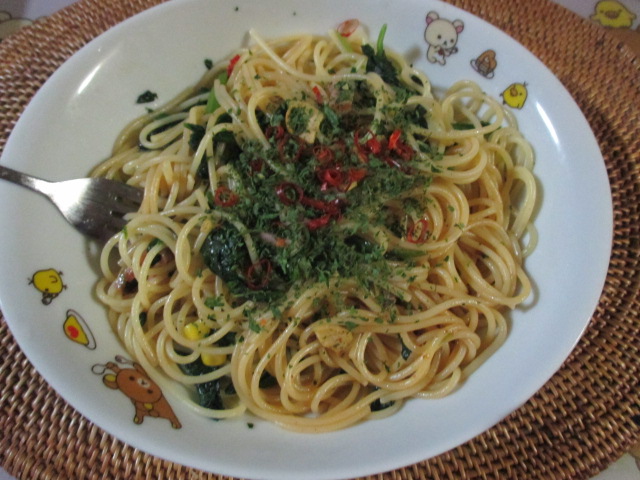 今日は簡単にほうれん草とベーコンのペペロにしました(o´・∀・‘o)ニコッ♪
