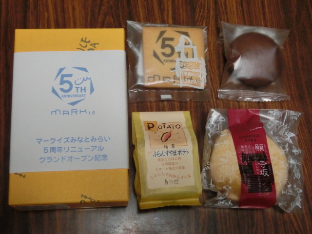 こんばんは。今日は早起きできたので、某商業施設の5周年リニューアルグランドオープン 記念ノベルティ、洋菓子詰合せをもらいに行きました。先着500名に間に合いました。しかし、こうも人が集まるものかと(^_^;)そりゃそうだ
