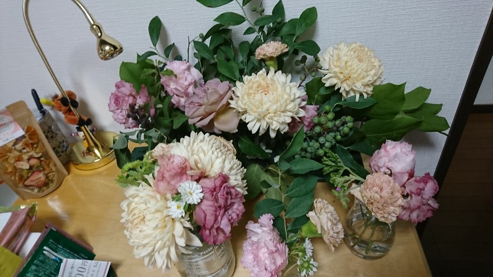 萎れた花を感謝と共に避けていくつかを花瓶に移しました。
