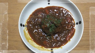 ソースは昨夜のハヤシライスをリメイク。