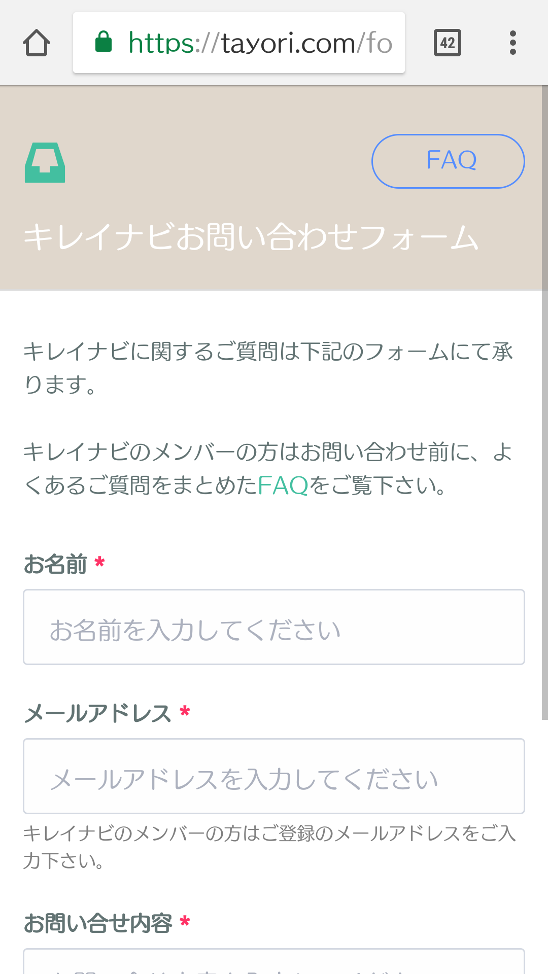 キレイナビのお問い合わせがWEB上で確認出来るように変更して頂けたそうです。