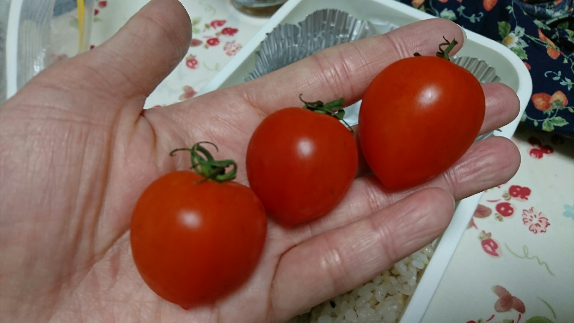 お弁当をお作りしておりますが、生協のトマトがハートみたいで可愛いです!!
