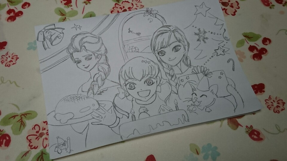 友達と友達の娘ちゃんにお送りする絵を描いておりました。
