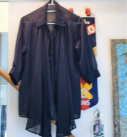 シャツカラーで2枚重ねのドレープデザイン。オンオフ問わず使えます。