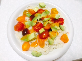 カラフルトマトとアボカドのサラダ素麺♪