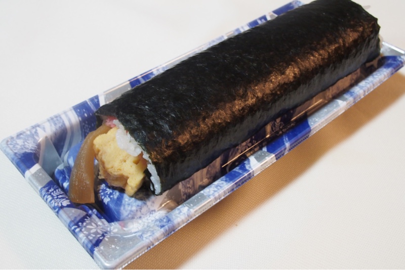 見た目は恵方巻みたいになり南南東を向いて無言でパクリしました。