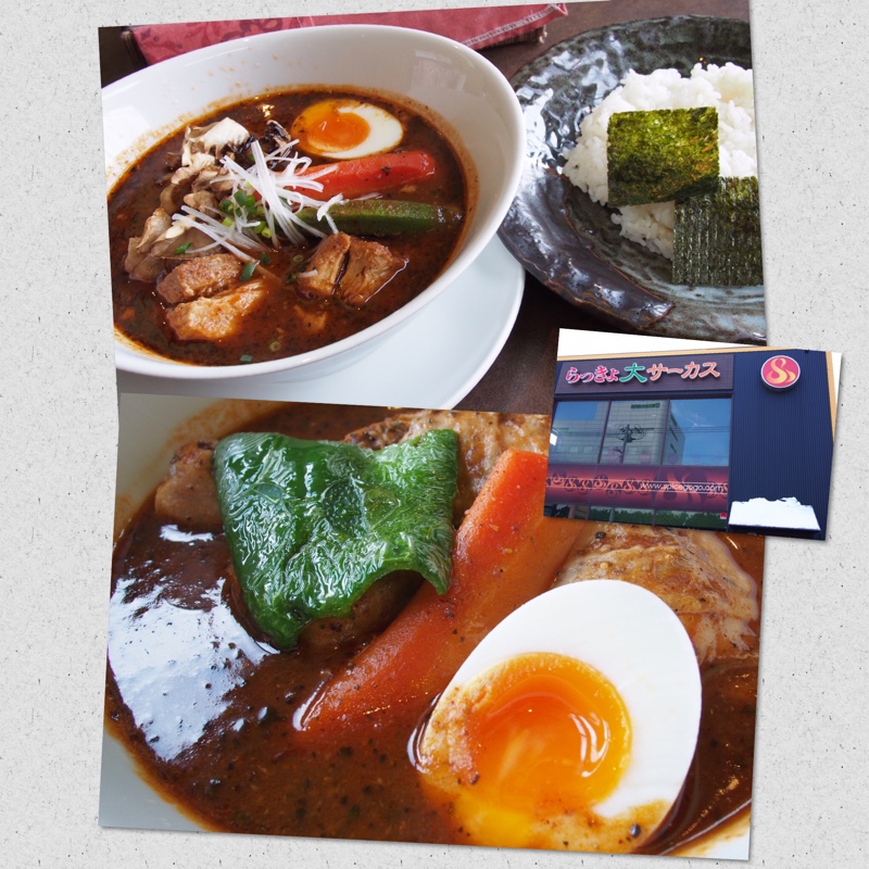 お昼ごはんは らっきょ大サーカスのスープカレーでした。私はもち豚角煮スープカレー、主人はチキンスープカレーを食べました。ボリュームがあるお肉と野菜がごろごろ入ったカレーは辛さもちょうどよくて美味しくいただきました。
