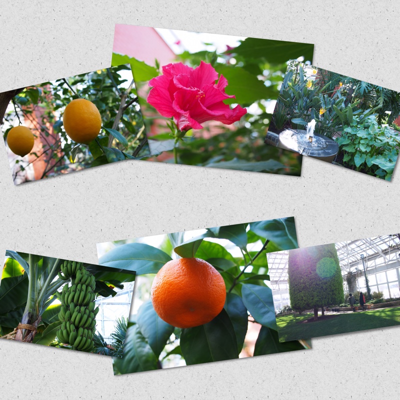植物園の中の気温は 20°C ダウンコートでは 汗ばむ陽気でした。外は雪景色 温室の中は熱帯の世界です。