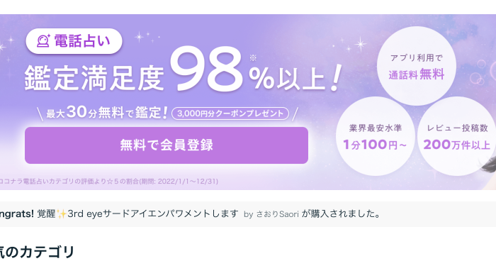 ココナラでは初めて会員登録する方に向けて、電話占いで使える3,000円分の無料クーポンをプレゼントしています。