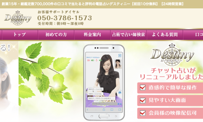 安心して利用できる占いサービスとして、「電話占いヴェルニ」を検討してみてはいかがでしょうか。 ディスティニー