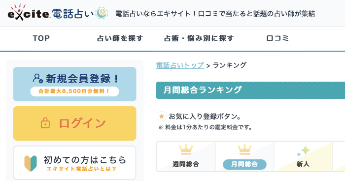 「電話占いに興味はあるけれど未経験で不安」という方にも、エキサイトは理想的な選択肢です。