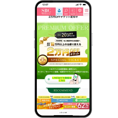 湘南美容クリニックの2万円OFFチケットは、対象の施術で使用できる割引クーポンです。