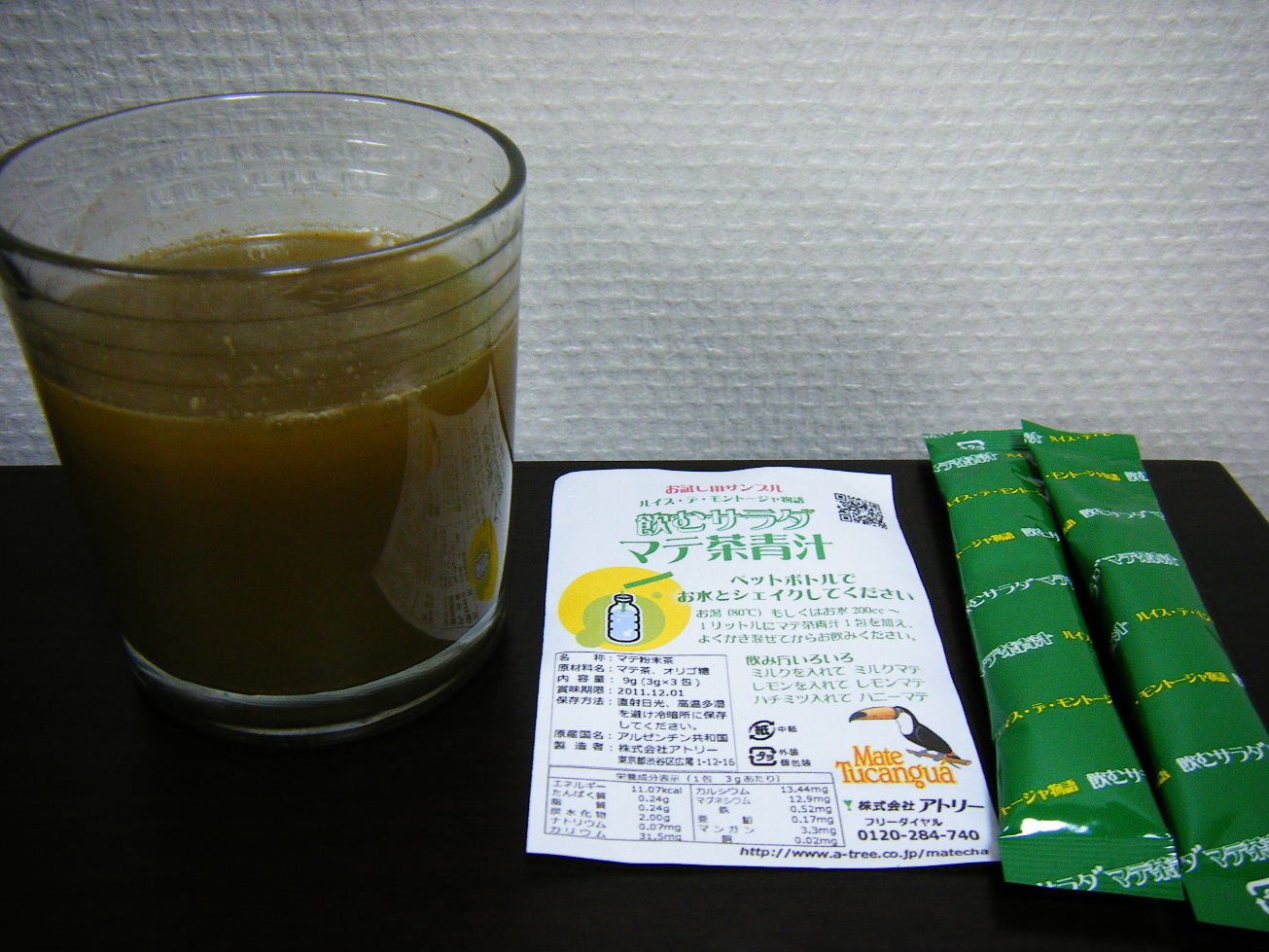 モニターさせていただきありがとうございます。 株式会社アトリーさんから マテ茶とマテ茶青汁のサンプルをを送っていただきました。 青臭いイメージがありましたが、 思ったほどクセがあまりなくて、飲みやすかったです。 マテ茶の成分や効果、おいしい飲み方などが書かれたものも 同封されていましたので、わかりやすく、参考になりました。 飲むサラダというくらいですから、 栄養補助によいかなと思います。 特に野菜嫌いな方にはお勧めだと思います。